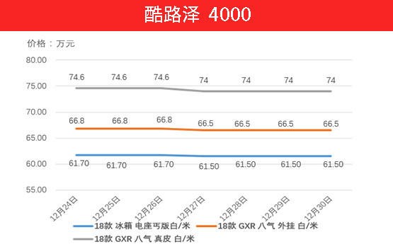 酷路泽4000仍实施着靠着降价挽回销量的政策。上周酷路泽中高配车型均出现了一定程度的价格下跌,其中冰箱电座丐版下降2000元,GXR八气外挂车型下降3000元,而GXR八气真皮车型则下降6000元。