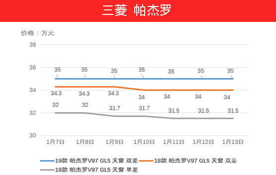 近期的帕杰罗( 参数 | 询价 )有点途乐以前的样子,不断地刷新着价格的下限。上周18款天窗 单差 车型下降5000元跌破32万元大关,天窗 双差 车型则下降3000元。以这个价格购买一辆好开不贵的硬派越野车性价比不用多说。
