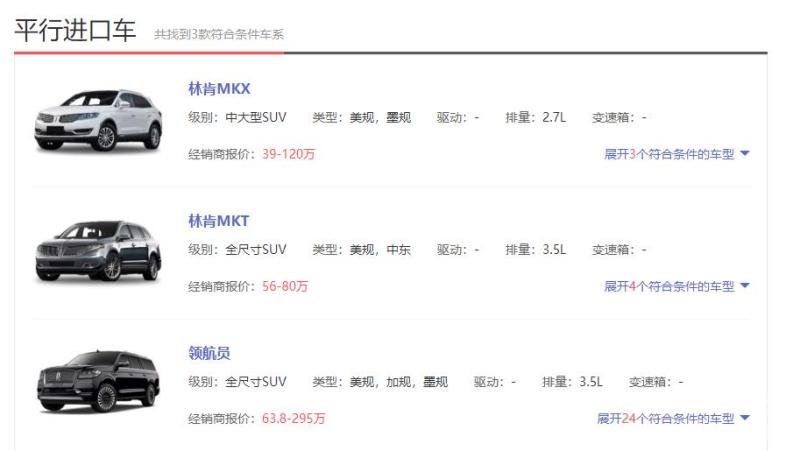目前,平行进口渠道能购买的林肯车型并不多(主要是林肯在中国本身就没投放太多车型,消费者对林肯品牌的认可度还需时日)。