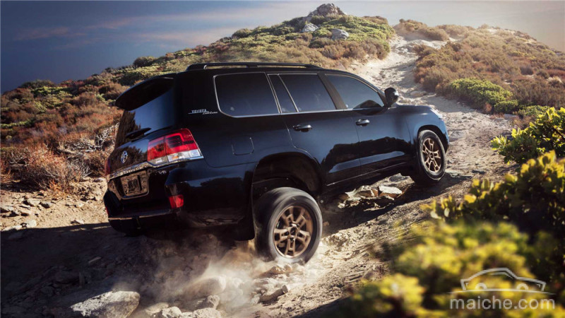 都被黑色镀铬环绕,后视镜也采用暗色处理;侧面还带有“Land Cruiser”的标识,格外醒目。