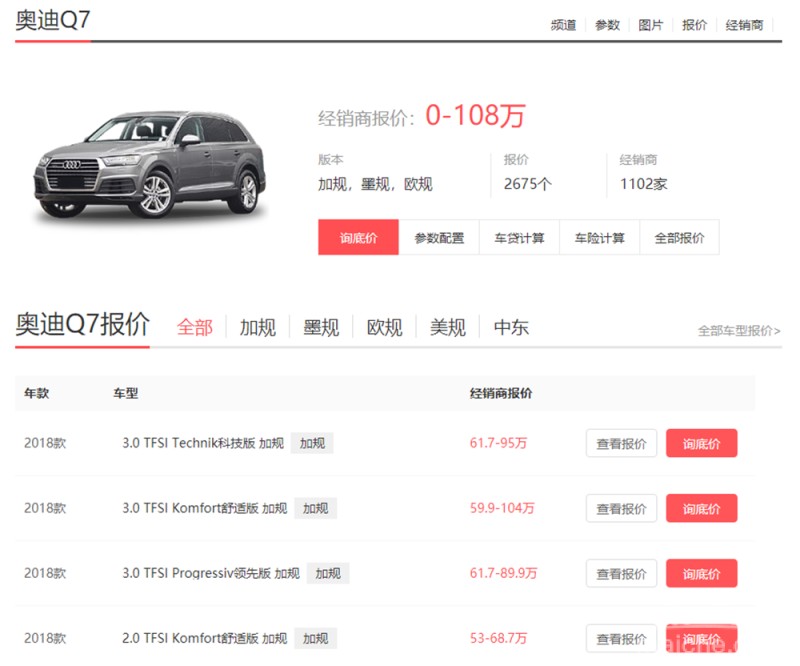 平行进口的奥迪车型,卖得最热的当属Q7,也是咨询平行哥最多的奥迪车。