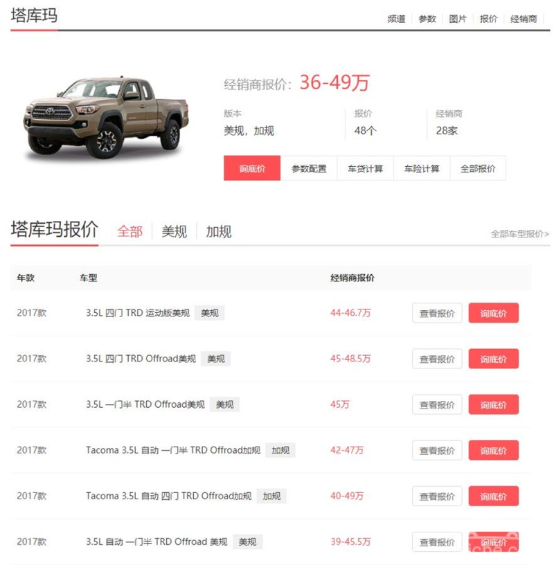 而目前,现款Tacoma只有平行进口渠道能买到(这也是平行进口的优势之一),以美规、加规为主,提供3.5L版本。