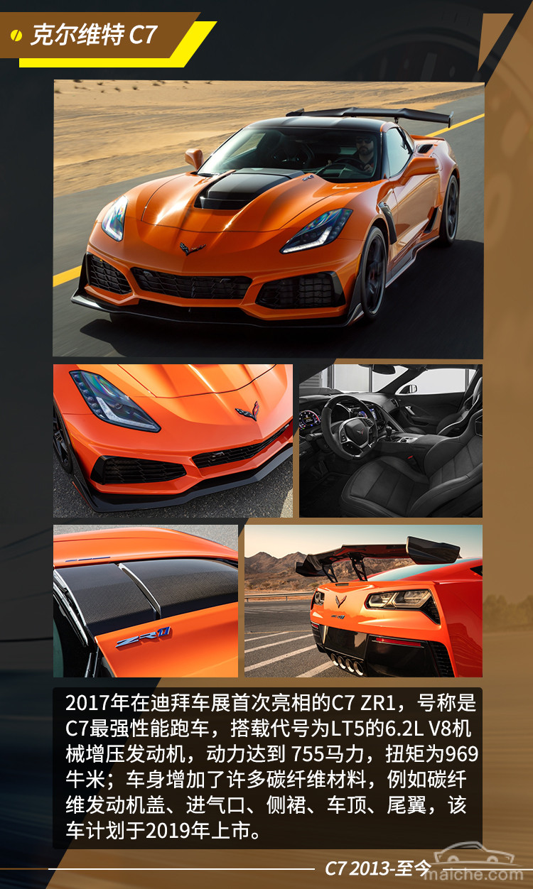 据了解,第八代克尔维特也即将在2019年问世,C8经过全新的设计,外形将与现版本大不相同,C8将是第一款发动机中置布局的克尔维特,或将搭载名为LT5的6.2L V8双涡轮增压发动机,并将采用Zora来命名,以此纪念克尔维特之父。