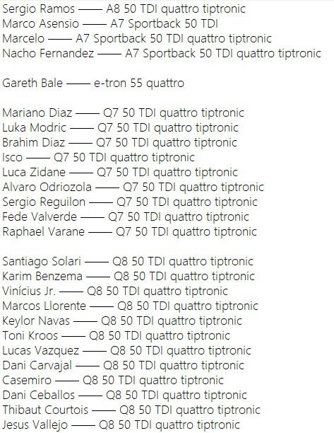 近日,奥迪给皇马球员赠车的仪式就开始了。一年一度,喜提奥迪最新旗舰车就在今天!