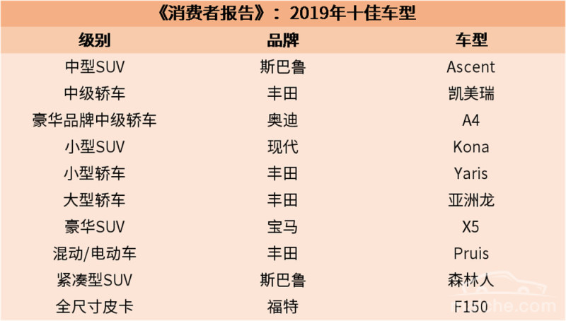 今天,我们就以美国权威媒体《消费者报告》,看看2019年度十佳车型。别的不说,至少比各种“野鸡”排名靠谱吧。