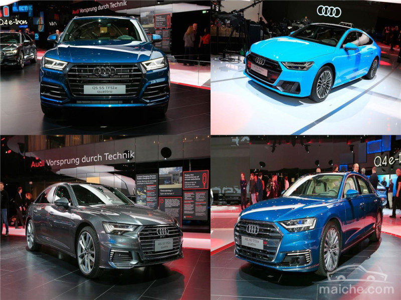 奥迪展台上一口气出现了四款我们既熟悉又陌生的车型:A6L( 参数 | 询价 ) 55 TFSIe、奥迪Q5( 参数 | 询价 ) 55 TFSIe、A7( 参数 | 询价 ) 55 TFSIe、A8L( 参数 | 询价 ) 60 TFSIe。以“TFSIe”结尾,表示插电式混动车型。