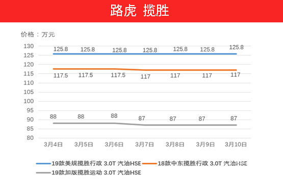 随着19款车型的不断增多,我们也开始更新19款揽胜( 参数 | 询价 )的价格。上周除美版揽胜行政车型不变外,其他两款车型均有所下降,其中18款中东揽胜行政下降5000元,19款加版揽胜运动( 参数 | 询价 )下降10000元。
