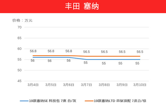 随着政策的平稳,日产途乐( 参数 | 询价 )的销量有所增长。上周整体价格并没有太大的波动,XE秋风栗/黑车型与XE白/黑车型保持不变,SE 18轮 高配车型下降3000元,该车型近期持续下降也是由于19款车型逐渐增多而造成的。