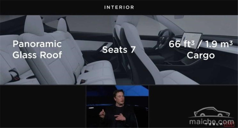 外观上,整体风格是基于Model 3打造(与Model 3产自同一平台,二者共享75%的零部件),所以看起来非常相似,不过车身高度肯定是提高了。也带有七座版本。