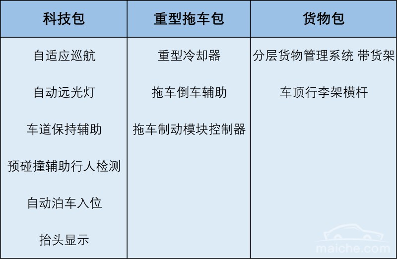 美规顶配版则在高配版的基础上多出了高级音箱包、重型拖车包、鹿皮顶等配置。