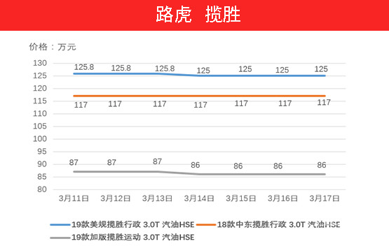 不得不说今年以来的揽胜( 参数 | 询价 )价格还是相当坚挺的,上周虽然有两款车型价格下降,但幅度都不算大。在没有汇率以及政策的影响下,左右价格的就只有库存量了。