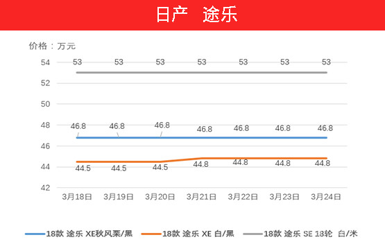 首先登场的仍然是日产途乐( 参数 | 询价 ),上周日产途乐的价格仅有一款车型继续上扬,不过上涨明显乏力,上涨区间也控制在3000以内,其他两款车型则保持不变。在税收政策即将改变的关键时期相信途乐也会给我们一个惊喜。