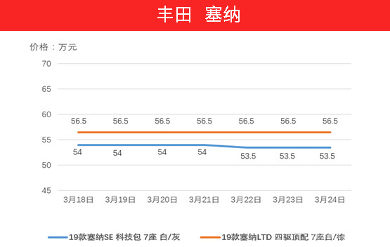 近期大量的塞纳涌入市场,库存量变大,在环保政策还不明朗的当下,经销商更多的采取降价吸引消费者,所以近期的塞纳价格又有下调,特别是科技包7座车型下降近5000元。