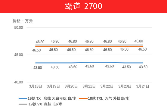 霸道2700的表现中规中矩,虽然目前库存较为紧张,但正处在关键时期,三款车型均未发生变化。