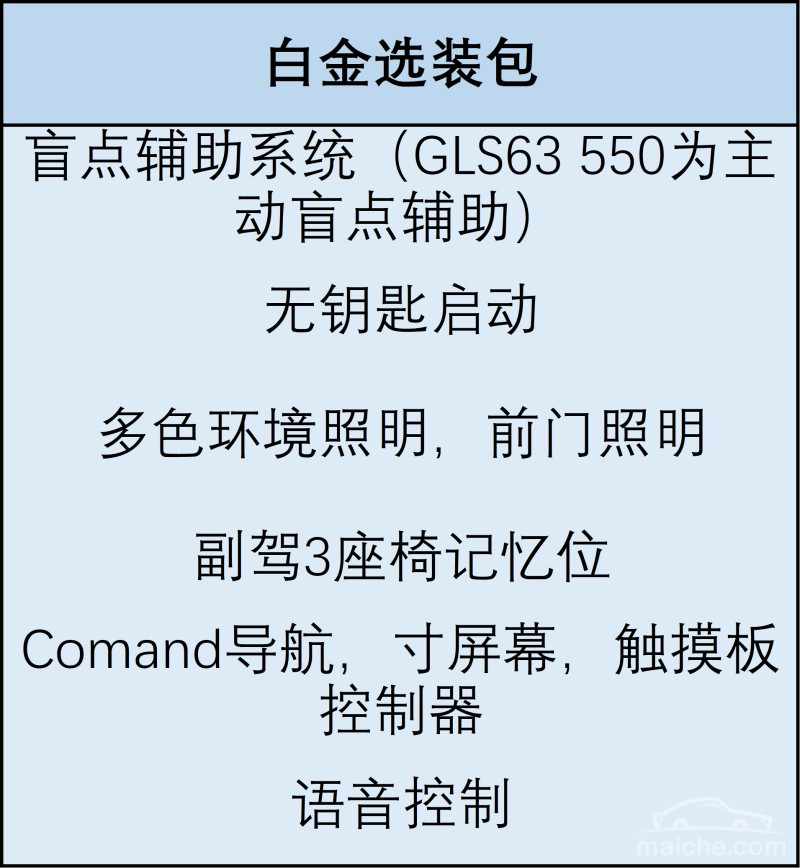 目前,平行进口的GLS分为加规、墨规、中东和美规版本,而其中美规和加规版则以特别的GLS 450版和其它几种版本区分开来,那么美规GLS究竟有什么特别的配置呢?让我们一起来看看。