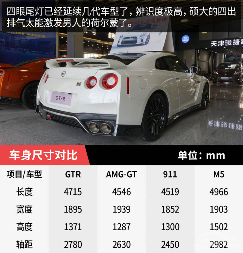 总结:GTR的名声无需多说,咱们说下它的优缺点。优点:1、图中为加规车型,配置丰富而且价格同中规相比有着不小的优势。2、GTR令人着迷且产生诟病的弹射起步功能在新款上已经逐渐改善。3、日常使用的舒适度提高。4、动力强就不多说了.缺点:1、价格高昂。2、对油品要求高。3、维修保养售后点少。