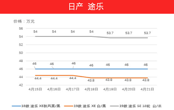 上周途乐的市场价格还是有些许下跌,毕竟它没有酷路泽那样强大的号召率。以牺牲利润甚至亏本来换取销量的增长也是没有办法的,上周除秋风栗车型外其他两款车型均有所下跌,其中XE车型下降6000元,而SE车型下降3000元。