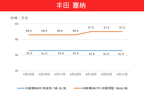 由于1季度关税加征暂免,塞纳的价格比去年下降了不少,不过近期又有所回温,上周塞纳LTD四驱顶配7座上升10000元,要知道这可是塞纳卖的最好的车型。
