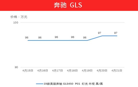 较上上周奔驰GLS450的价格继续上涨10000元,目前价格已攀升至 97万元左右。