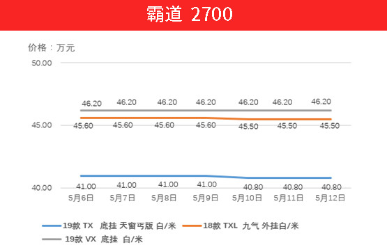 经过一段时间价格调整,霸道2700多数车型的价格继续往下走,如果2700“丐版”的价格能到40万,我个人还是很推荐的。上周 19款TX 底挂 天窗 丐版下降2000元,18款TXL下降1000元。