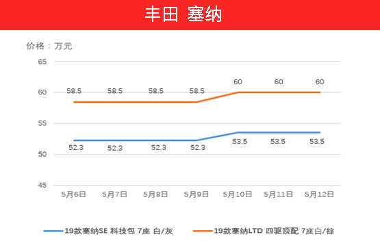 丰田塞纳的价格本就处于触底反弹期间,又赶上关税上调,其价格一飞冲天,短时间内想要掉下来应该是不太可能的。上周19款塞纳SE 科技包 7座车型上升12000元,而顶配车型上升15000元。
