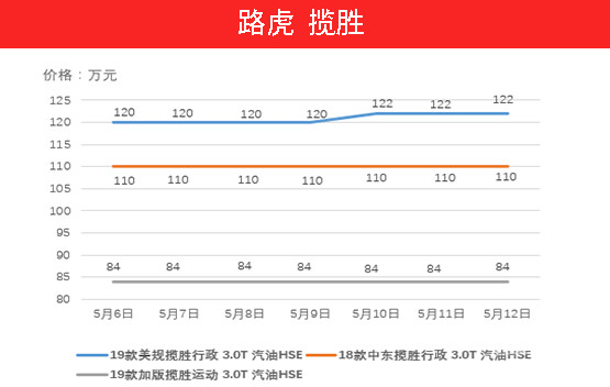 路虎揽胜( 参数 | 询价 )随着逐渐“回号”,价格也有所调整。上周中东与加版车型价格变化不大,而美版车型上升20000元。