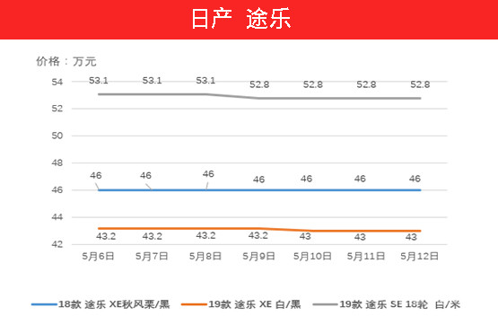 上周途乐( 参数 | 询价 )的市场价格继续下行。除秋风栗车型外其他两款车型均有所下跌,其中