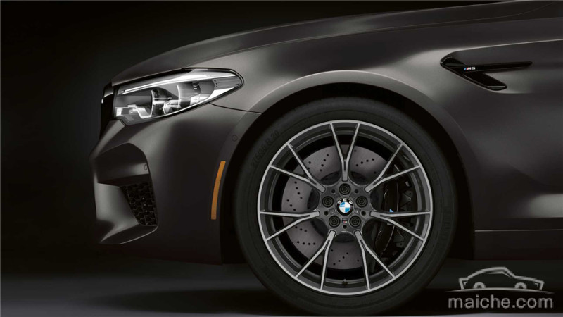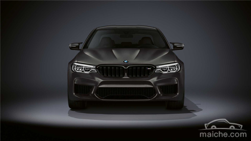 宝马M5 35周年特别版并未在M5原有的设计上进行改动,只是采用了名为BMW Individual Frozen Dark Grey II的哑光金属漆,同时也对前进气格栅和前包围上的网格进行了黑化处理。此外,新车还配备了Graphite Grey制成的20英寸M轻合金车轮和黑色制动卡钳。