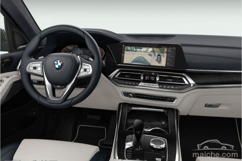 一共有六个选装包可以提供选择,照目前经销商引进的车型来看,一般都会带运动包和高级卓越包,也就是车商说的豪华包,其实X7的基础配置不低,毕竟百万级别。基础配置像保时捷一样不厚道的话X7销量就说不准了,刚刚有提到的蓝白双色内饰,就是双色夜蓝色包里面的配置。像M运动包就很照顾中国的面子工程,22寸大尺寸轮毂,目前在路上跑的车型轮毂多半还是在16-18寸之间,22寸着实抢眼。并且一套里外的M包围给人第一眼的感觉就是非一般X7。估计车商引进的车源大部分都会带上M运动包。