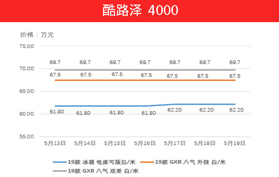 兰德酷路泽( 参数 | 询价 )的价格依旧非常稳定,甚至一些畅销车型上还有几千元的上涨,怎么说呢?都是消费者给惯的。上周19款 冰箱 电座 丐版车型上升4000元,其他车型保持不变。