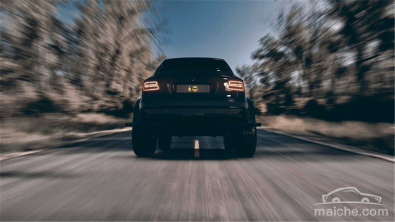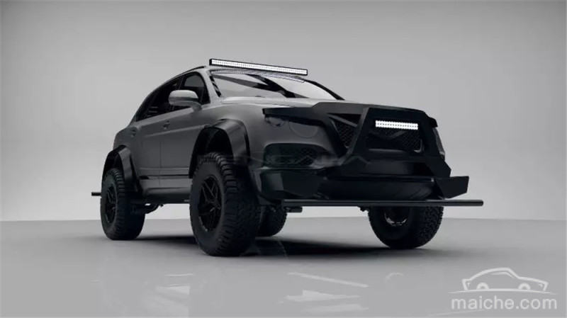 从图中看,新车基于添越增加了大量越野元素,比如前端增加了定制防撞杠与LED灯带,遮挡了原本添越的进气格栅外观。与此同时,车顶上也额外增加了一条LED灯带。此外,还采用了宽大的轮拱和加宽轮眉,以及越野轮胎。尾部也采用了越野风格,加入了防撞杠等。