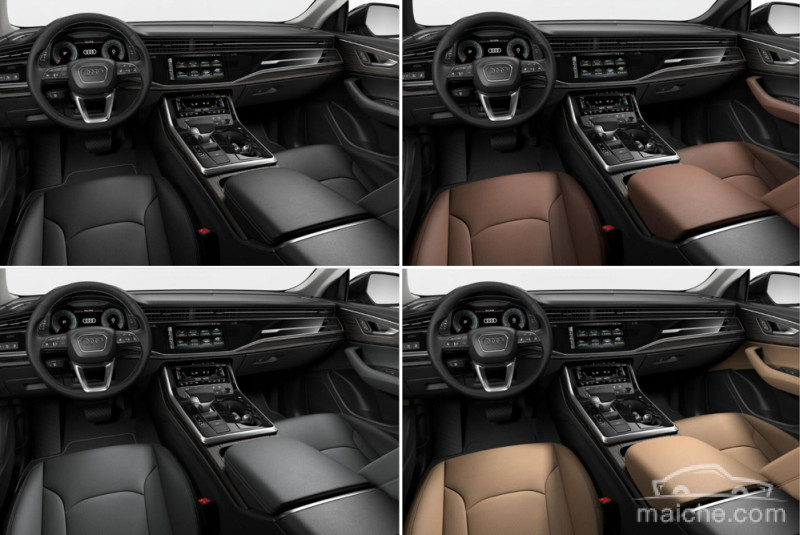 奥迪Q8 的内饰共有四种搭配方案,真皮套装的舒适性不言而喻,更有S运动包所提供的运动风格的内饰套件。