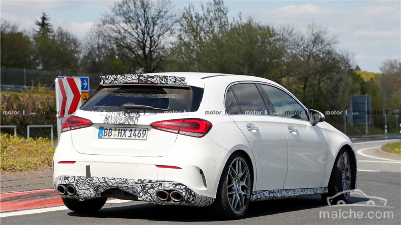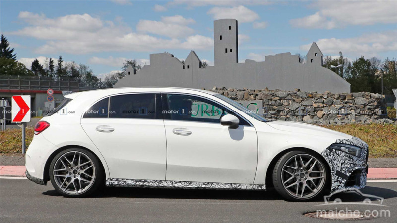 在侧面,新车的整体设计没有太大改变,其侧裙预计比A35更加激进一些。此外,大尺寸的双六辐式AMG轮圈也是A45的身份象征。