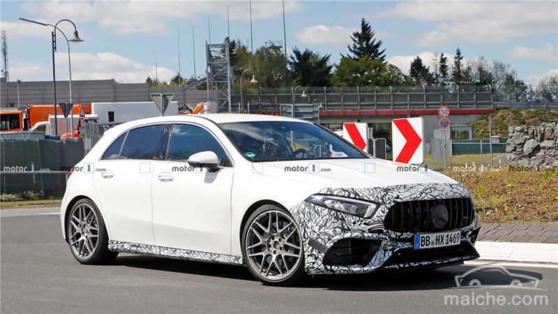 日前,海外媒体又发布了一组全新AMG A45( 参数 | 询价 )的路试谍照,新车也是为此后量产做最后的准备。据悉,全新AMG A45最高动力将打破400匹马力,而这样的动力调校仅仅来自于一台4缸机,此外,新车预计将会在今年9月份的法兰克福车展上正式亮相。