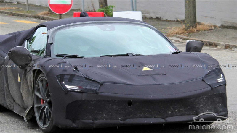 新车是法拉利继LaFerrari之后法拉利第二款混合动力车型,外媒猜测它或许是基于法拉利488( 参数 | 询价 )打造而来。通过浓厚的伪装我们可以大致看出新车的轮廓,扁平低矮的车头与法拉利新车F8 Tributo( 参数 | 询价 )极为相似,前进气口巨大,预计新车将配备更为夸张的前唇和扰流板。