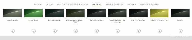 它一共有七种基础色,分别是黑、蓝、黄、绿、红、灰、金属色。每一种基础色都有延伸多种细分颜色,所以欧陆原厂选配颜色可达60多种,毫不担心你选不到心仪的颜色,并且欧陆的颜色选配不像其它品牌,每一个颜色的单一性很强,基本不会撞色。