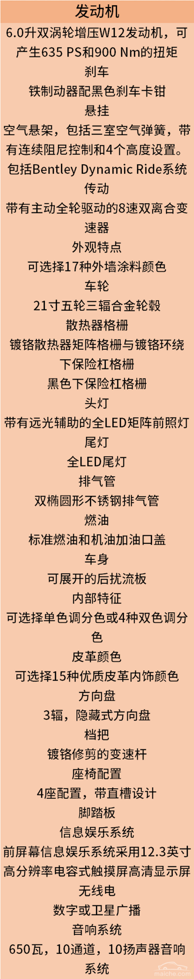 总体来说到了宾利这个级别的车型,它和选配王保时捷来说,宾利更注重的是格调,而保时捷则是分配比较均匀,性能和外观五五开。宾利则不一样,基础配置很高,更多的是外观颜色和内饰颜色选择。它定位很准,能购买它的车主也不会为配置而烦恼。就目前来说平行进口对比中规还是有不小的优势,起码在数量上和价格上能够让你更早享受宾利带来的体验。