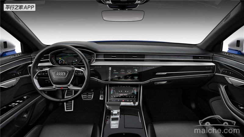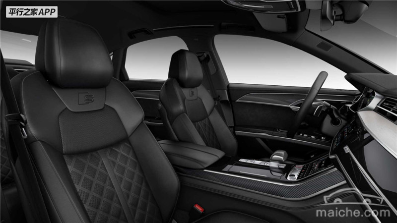 内饰方面,全新奥迪S8采用了整体黑色的主色调,其中烤漆面板搭配的碳纤维饰板、四幅式的S风格运动方向盘、运动座椅上的“S”标识,以及菱形格状的真皮座椅都是区分S8和普通版车型的区别所在。