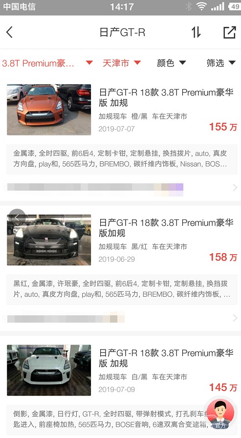 在国内,平行进口版本的GT-R目前售价在155万左右。