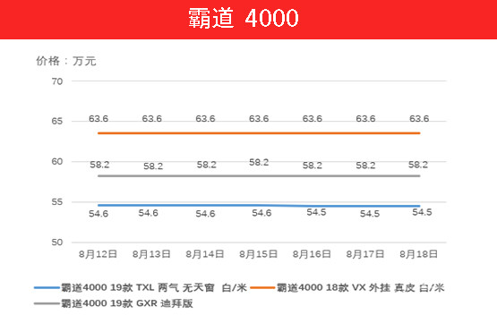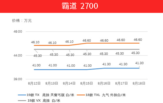霸道4000的价格相比 2700的价格更加的平稳,三款车型基本没有变动, 2700更多的还是城市用车环境,而买4000的朋友兼顾中强度越野,受众也更小。