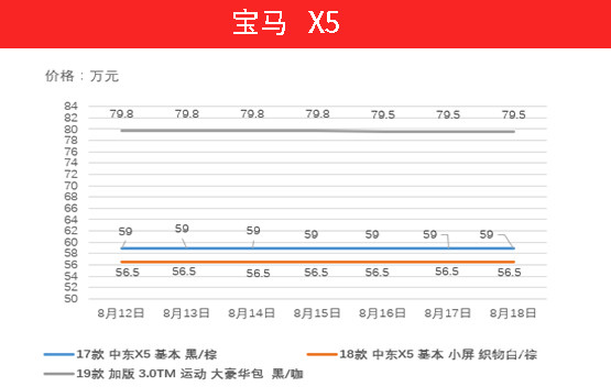 宝马的价格相对上上周有些许下降,且主要集中在加版高配车型上。