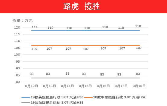 相较于其他车型的价格波动,路虎揽胜( 参数 | 询价 )算是近期价格最稳定的一个。19与18款路虎揽胜行政降价不多,揽胜运动( 参数 | 询价 )仍是我非常推荐的一款车型。