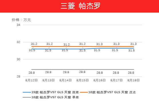 同样是中东版车型,帕杰罗( 参数 | 询价 )也是卖一台少一台,作为一个十几年没有换代的车型,说好听点是皮实、耐用,说难听点就是技术老旧。上周19款天窗 双差车型上涨1000元,18款天窗 双差车型较为稳定。