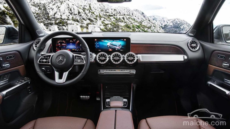 内饰方面,全新奔驰GLB同步家族式最新设计语言,两贯通式大屏、涡轮式出风口、双拇指控制功能以及全新的COMMAND系统等,可选装10.25英寸显示屏和Burmester音响系统。