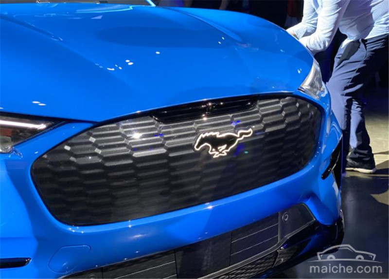 外观部分,新车和大部分电动车一样采用了封闭式进气格栅设计,中间带有Mustang Logo,两侧大灯则采用较为锋利的造型设计,灯组内LED日行灯点亮后也更具品牌辨识度。