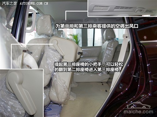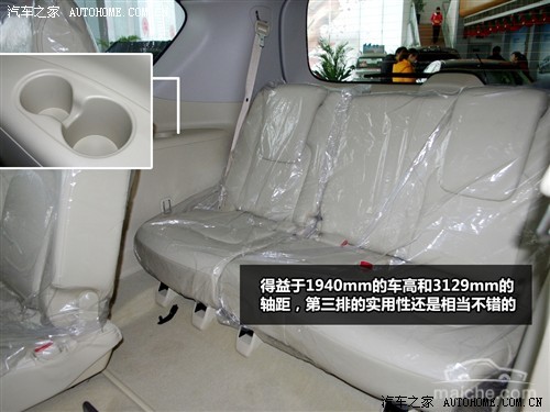 提起第二排座椅的小把手,可以轻松的翻到第二排座椅进入第三排座椅。得益于1940mm的车高和3129mm的轴距,第三排的实用性还是相当不错的,不过虽然设计上可以乘坐3人,但中间的乘坐舒适性会降低。