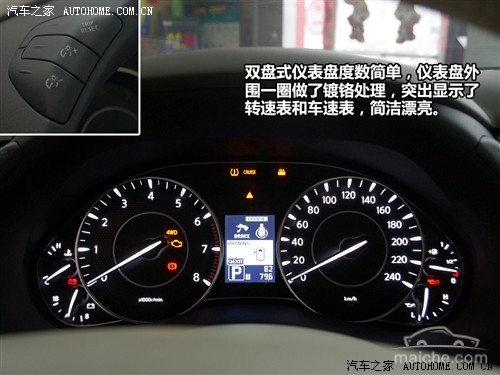 新式仪表盘外围一圈做了镀铬处理,突出显示了转速表和车速表,简洁漂亮。