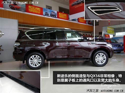 [汽车之家 郑州实拍] 途乐――不少人看到这个名字的时候可能会觉得陌生,不过在日系越野车中,除了兰德酷路泽和帕杰罗外,途乐也是为数不多的依旧保持纯正越野性能的SUV,或许在新闻联播最后几分钟的国际新闻里偶尔会看到它的身影。尽管,日产发布第七代途乐已有近一年的时间,但国内迟迟未见其身影。今日,编辑有幸见到这款日本进口的全新途乐,下面就让我们一睹这款日产全新途乐车型。