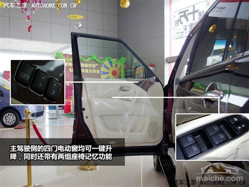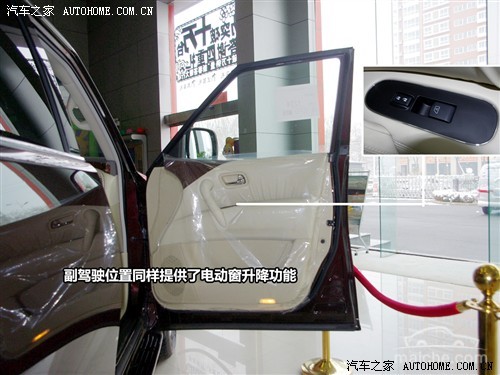 门板上厚厚的真皮材质缝制非常精细,主驾驶侧的四门电动窗均可一键升降,同时还带有两组座椅记忆功能。二排侧门的储物框里放置了耳麦,可供后排乘客娱乐应用。