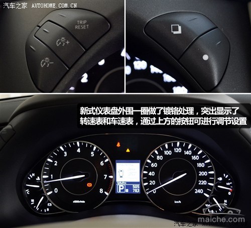 『新式仪表盘外围一圈做了镀铬处理,突出显示了转速表和车速表,简洁漂亮』